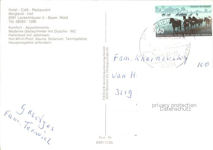 alte Postkarte Lackenhaeuser Niederbayern Hotel Restaurant Bergland-Hof postalisch gelaufen Erhaltung siehe scans