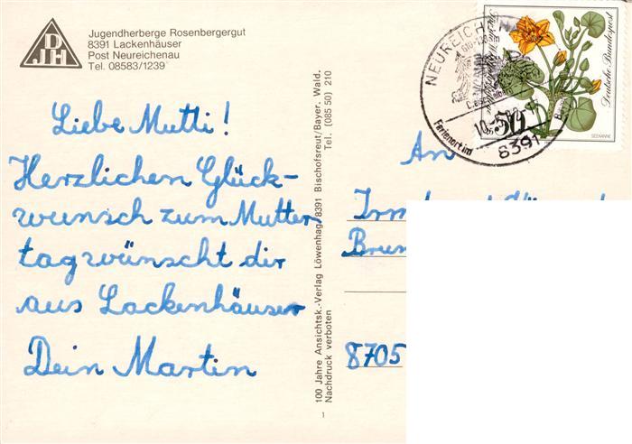 73879545 alte Postkarte Lackenhaeuser Niederbayern Jugendherberge Rosenbergergut postalisch gelaufen Erhaltung siehe scans [FriedD77] KatCode: 11110009272136