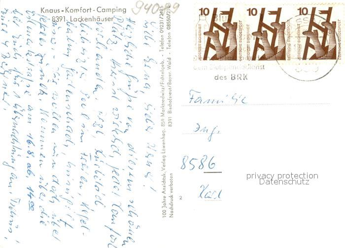 73645556 alte Postkarte Lackenhaeuser Niederbayern Knaus Komfort Camping Kurbad Restaurant oekumenische Kirche Kneippanlage Hallenschwimmbad postalisch gelaufen Erhaltung siehe scans [WerneD78] KatCode: 11110009272136
