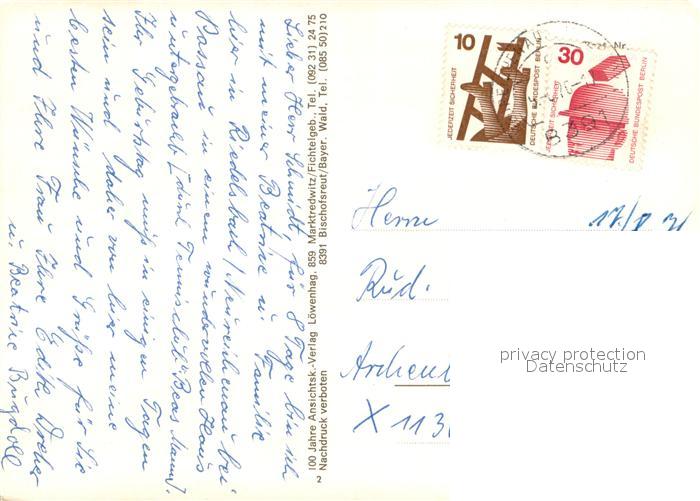 73672130 alte Postkarte Lackenhaeuser Niederbayern Panorama Fliegeraufnahme Gasthof Kirche Infotafel Felsen postalisch gelaufen Erhaltung siehe scans [WerneD78] KatCode: 11110009272136