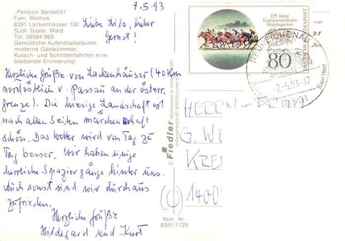 73877405 alte Postkarte Lackenhaeuser Niederbayern Pension Benedikt postalisch gelaufen Erhaltung siehe scans [WerneD78] KatCode: 11110009272136