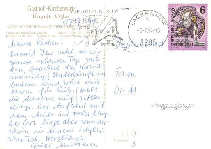73657319 alte Postkarte Lackenhof Gaming Gasthof Kirchenwirt postalisch gelaufen Erhaltung siehe scans [WerneD78] KatCode: 11390121032001