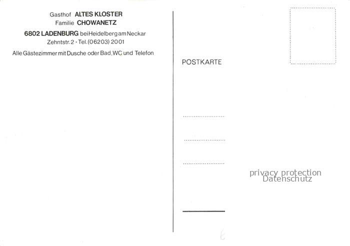74040569 Ladenburg Gasthof Altes Kloster Restaurant Kamin Gastzimmer postalisch nicht gelaufen Erhaltung siehe scans [FriedD77] KatCode: 11110008226038