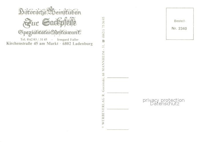 73660546 Ladenburg Historische Weinstuben zur Sackpfeife Restaurant postalisch nicht gelaufen Erhaltung siehe scans [FriedD77] KatCode: 11110008226038