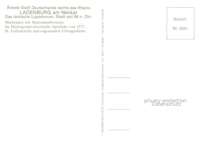73203394 Ladenburg Marktplatz Madonnenbrunnen Altstadt Fachwerkhaeuser Kirche postalisch nicht gelaufen Erhaltung siehe scans [FriedD77] KatCode: 11110008226038
