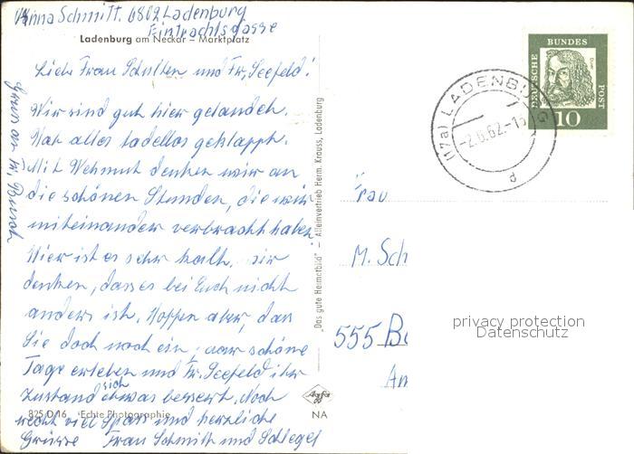 72010665 alte Postkarte Ladenburg Marktplatz postalisch gelaufen Erhaltung siehe scans KatCode: 11110008226038