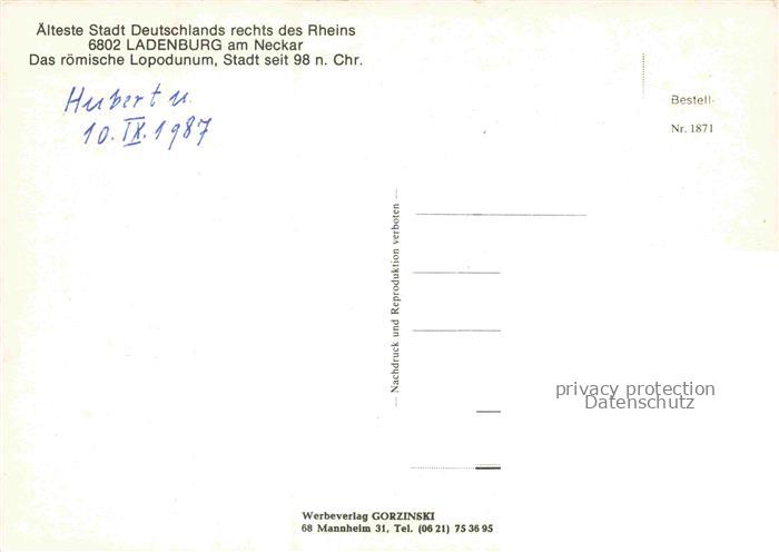74048897 Ladenburg Statue Stadtturm Kirche Saeule Rathaus postalisch nicht gelaufen Erhaltung siehe scans [WerneD78] KatCode: 11110008226038