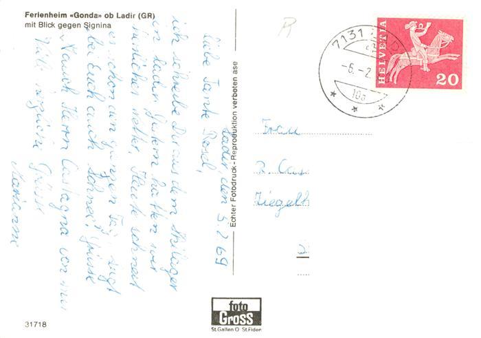 13889122 alte Postkarte Ladir GR Ferienheim Gonda mit Signinablick postalisch gelaufen Erhaltung siehe scans [WerneD78] KatCode: 11470100355456