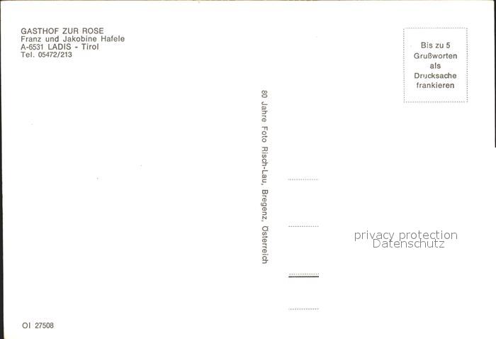 72262046 Ladis Gasthaus zur Rose postalisch nicht gelaufen Erhaltung siehe scans KatCode: 11390334070613