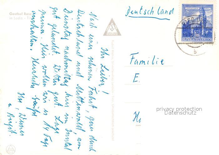 73286563 alte Postkarte Ladis Gasthof Rose postalisch gelaufen Erhaltung siehe scans [NatalD47] KatCode: 11390334070613