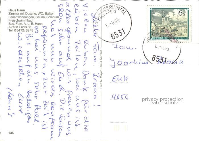 72568436 alte Postkarte Ladis Haus Hann postalisch gelaufen Erhaltung siehe scans [KathaD79] KatCode: 11390334070613