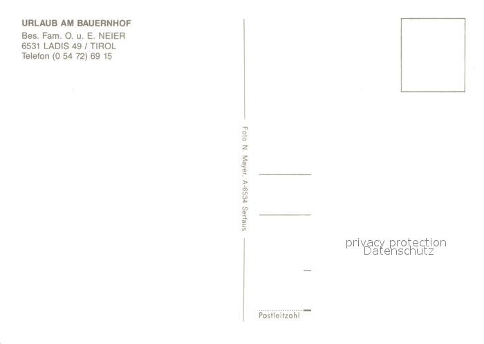 13011043 Ladis Holzackerhof postalisch nicht gelaufen Erhaltung siehe scans [NatalD47] KatCode: 11390334070613