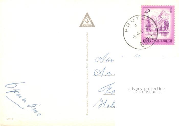 73063204 alte Postkarte Ladis Ortsansicht mit Kirche Burg Wasserspiegelung Alpenpanorama postalisch gelaufen Erhaltung siehe scans [FriedD77] KatCode: 11390334070613