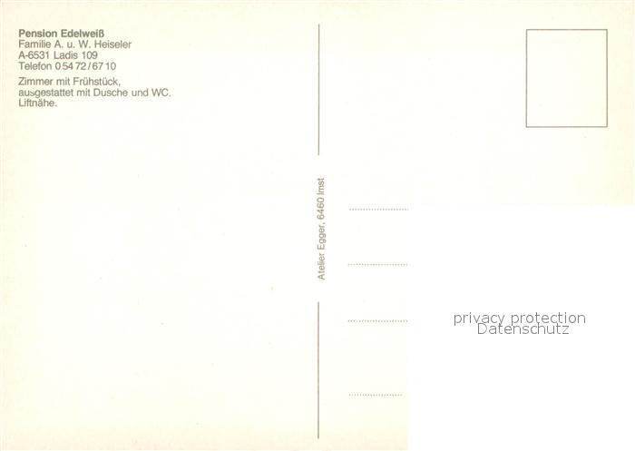 12990931 Ladis Pension Edelweiss postalisch nicht gelaufen Erhaltung siehe scans [NatalD47] KatCode: 11390334070613