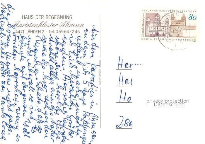 73720721 alte Postkarte Laehden Haus der Begegnung Maristenkloster Ahmsen postalisch gelaufen Erhaltung siehe scans [LiesaD40] KatCode: 11110003454026