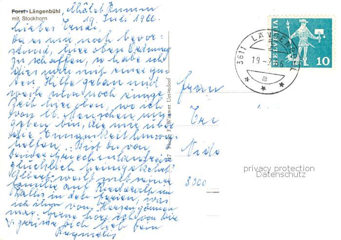 13867527 alte Postkarte Laengenbuehl BE Forst Laengenbuehl mit Stockhorn postalisch gelaufen Erhaltung siehe scans [WerneD78] KatCode: 11470060240774