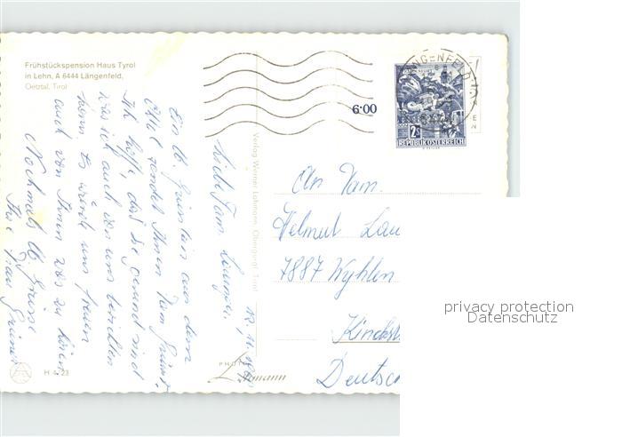 72921629 alte Postkarte Laengenfeld Oetztal Fruehstueckspension Haus Tyrol postalisch gelaufen Erhaltung siehe scans [NatalD47] KatCode: 11390334070208