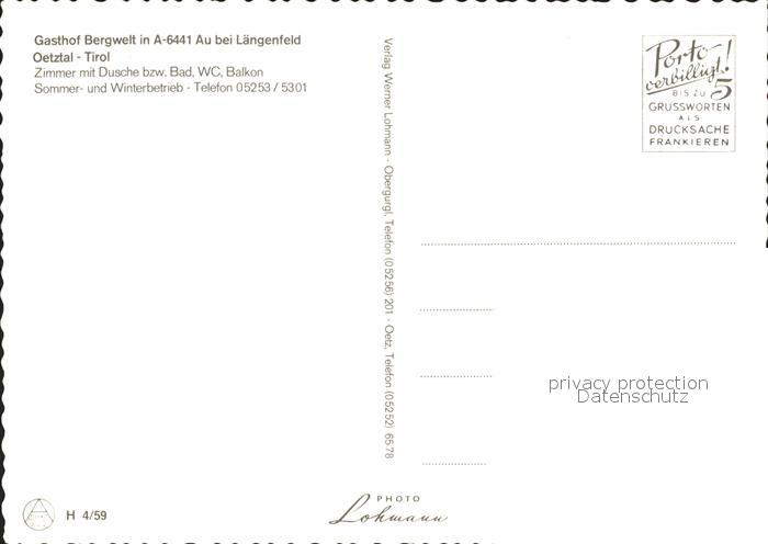 71822185 Laengenfeld Oetztal Gasthof Bergwelt postalisch nicht gelaufen Erhaltung siehe scans KatCode: 11390334070208