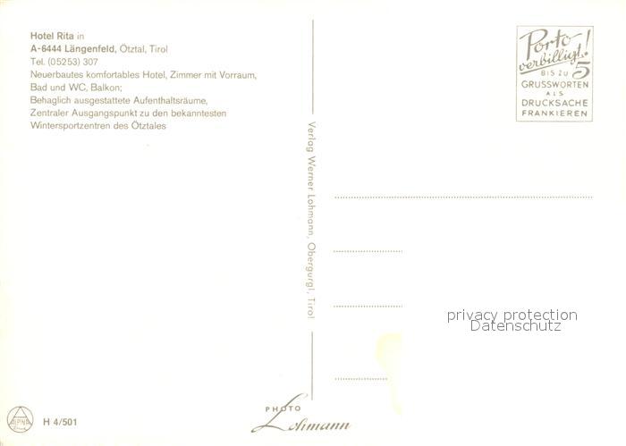 13516298 Laengenfeld Oetztal Hotel Rita postalisch nicht gelaufen Erhaltung siehe scans [WerneD78] KatCode: 11390334070208
