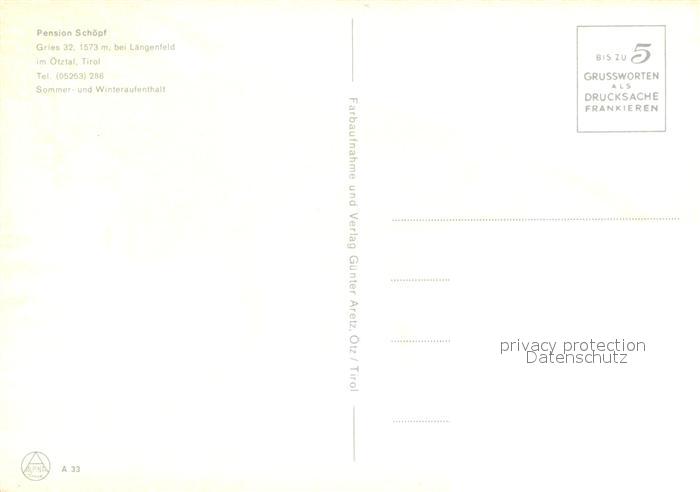 12953786 Laengenfeld Oetztal Pension Schoepf postalisch nicht gelaufen Erhaltung siehe scans [NatalD47] KatCode: 11390334070208