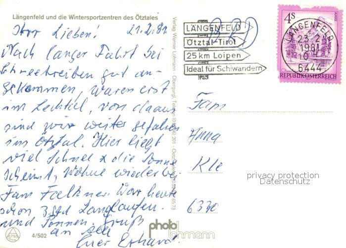 73591707 alte Postkarte Laengenfeld Oetztal Wintersportzentren des oetztales Ortsansicht mit Kirche Winterpanorama postalisch gelaufen Erhaltung siehe scans [FriedD77] KatCode: 11390334070208