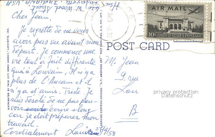 72033720 old postcard Lafayette Indiana Science Building Purdue University postalisch gelaufen Erhaltung siehe scans KatCode: 14140160000000