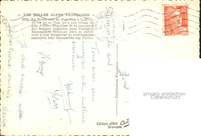 12295077 carte postale Laffrey Monument de Napoleon postalisch gelaufen Erhaltung siehe scans KatCode: 11170038138203