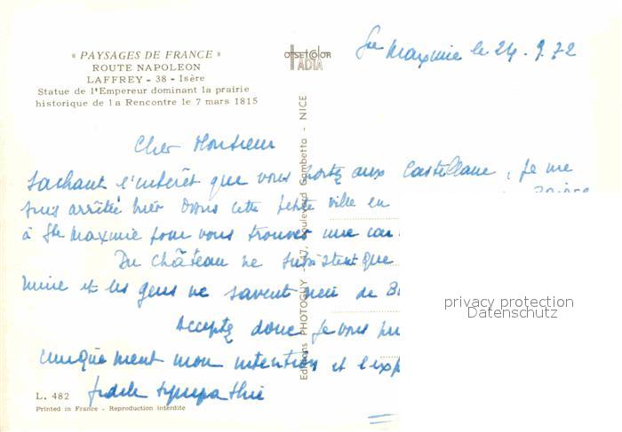 12853109 Laffrey Statue de Empereur dominant la prairie Rencontre postalisch nicht gelaufen Erhaltung siehe scans [NatalD47] KatCode: 11170038138203