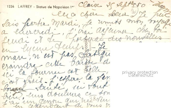 13504620 Laffrey Statue de Napoleon postalisch nicht gelaufen Erhaltung siehe scans [LiesaD40] KatCode: 11170038138203