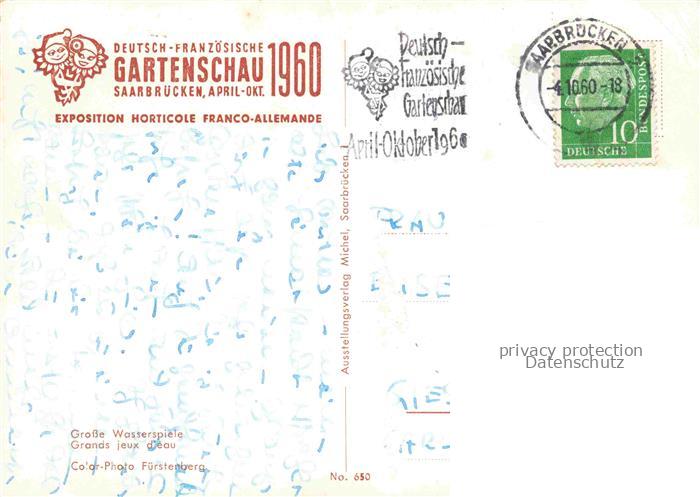 74054473 alte Postkarte LAGA Landesgartenschau Saarbruecken Wasserspiel postalisch gelaufen Erhaltung siehe scans [IrynaD87] KatCode: 22100000000100