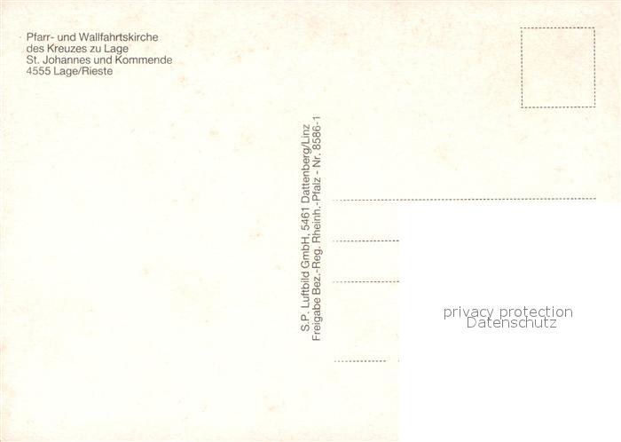 73168503 Lage Rieste Pfarr und Wallfahrtskirche des Kreuzes zu Lage St Johannes und Kommende Fliegeraufnahme postalisch nicht gelaufen Erhaltung siehe scans [WerneD78] KatCode: 11110003459031