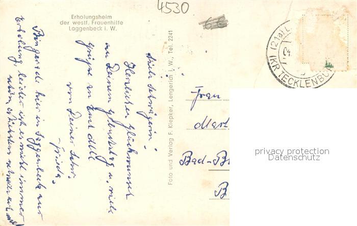 73709780 Laggenbeck Erholungsheim d. westf. Frauenhilfe postalisch nicht gelaufen Erhaltung siehe scans [LiesaD40] KatCode: 11110005566028