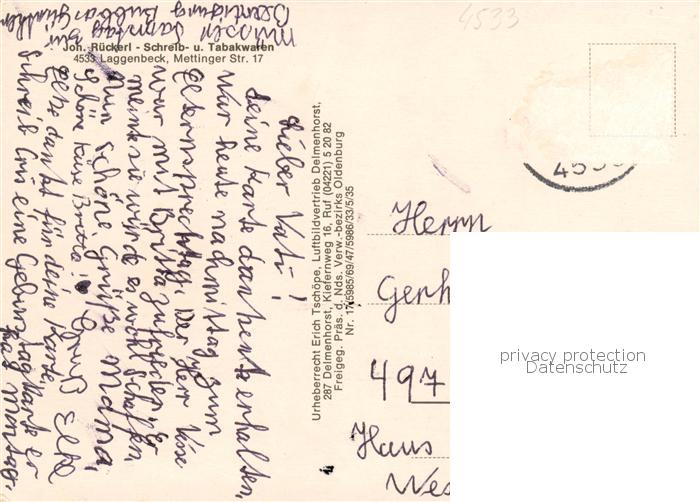 73854214 alte Postkarte Laggenbeck Ibbenbueren Fliegeraufnahmen mit Kirche und Freibad postalisch gelaufen Erhaltung siehe scans [WerneD78] KatCode: 11110005566028