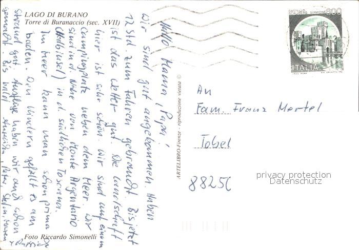 old postcard Lago di Burano Torre di Buranaccio secolo XVII postalisch gelaufen Erhaltung siehe scans