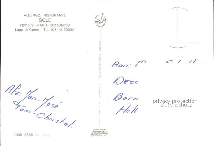 old postcard Lago di Como Albergo Ristorante Sole S Maria Rezzonico Strand postalisch gelaufen Erhaltung siehe scans