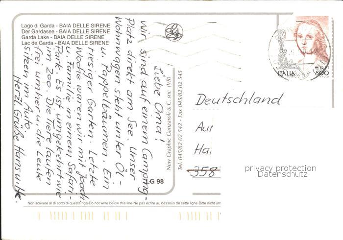 old postcard Lago di Garda Baia delle Sirene postalisch gelaufen Erhaltung siehe scans