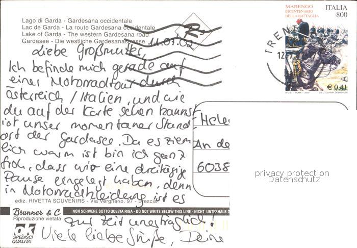 old postcard Lago di Garda Gardesana occidentale Westliche Gardesanastrasse Gardasee Alpen Sonnenuntergang postalisch gelaufen Erhaltung siehe scans
