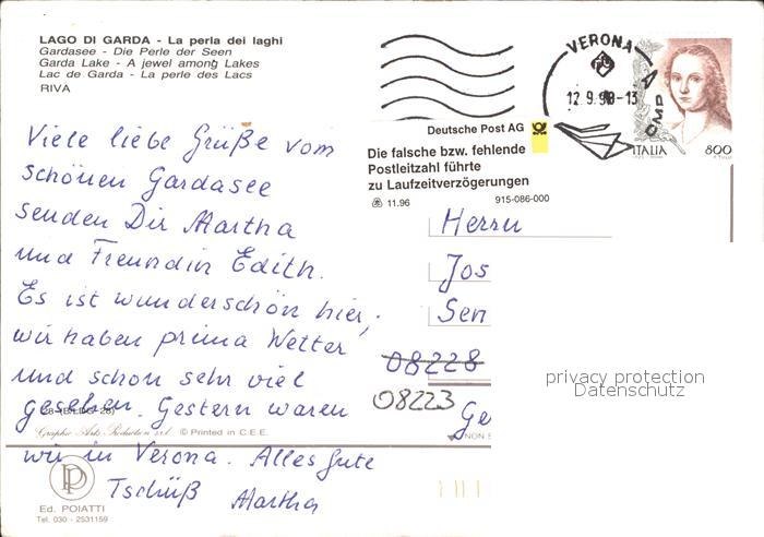 old postcard Lago di Garda Hotel Sole postalisch gelaufen Erhaltung siehe scans