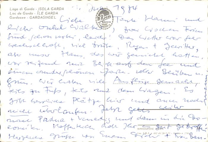 Lago di Garda Isola Garda Fliegeraufnahme postalisch nicht gelaufen Erhaltung siehe scans