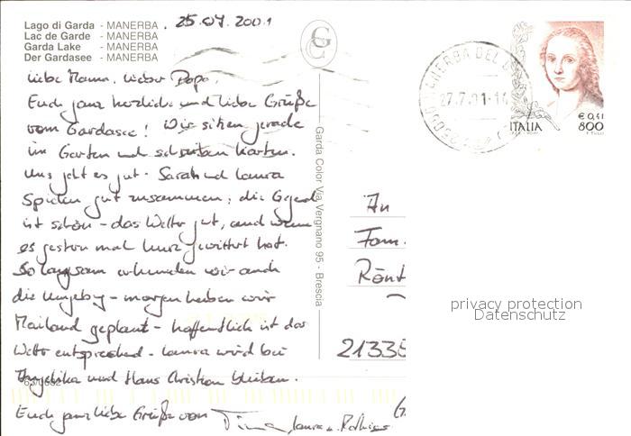 old postcard Lago di Garda Manerba Gardasee Segelboote postalisch gelaufen Erhaltung siehe scans