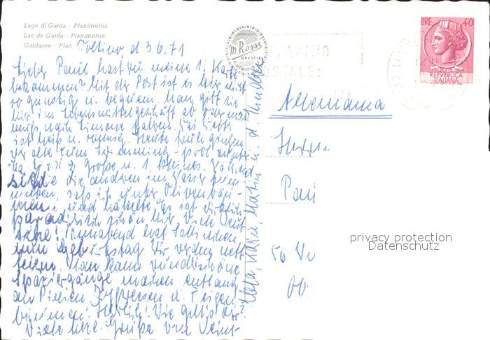 old postcard Lago di Garda Planimetria postalisch gelaufen Erhaltung siehe scans