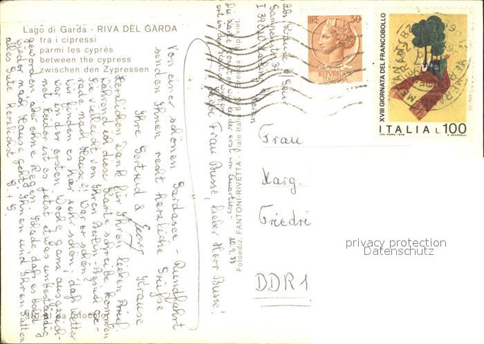 old postcard Lago di Garda Riva del Garda tra i cipressi postalisch gelaufen Erhaltung siehe scans