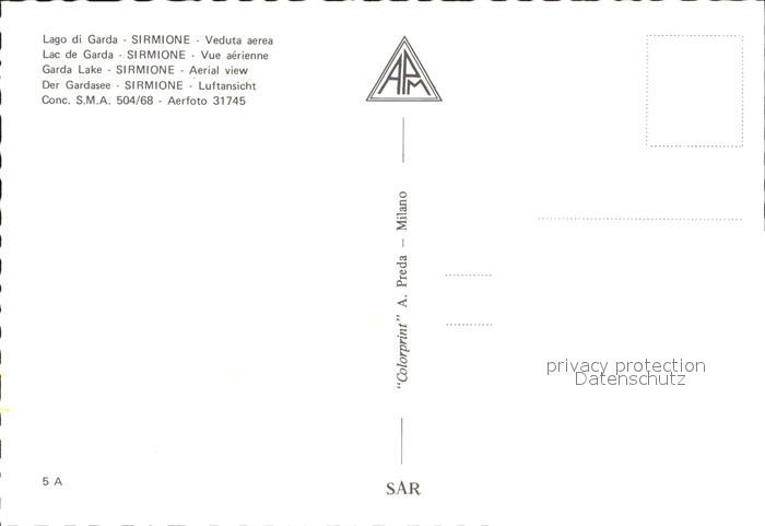 Lago di Garda Sirmione Flugansicht postalisch nicht gelaufen Erhaltung siehe scans