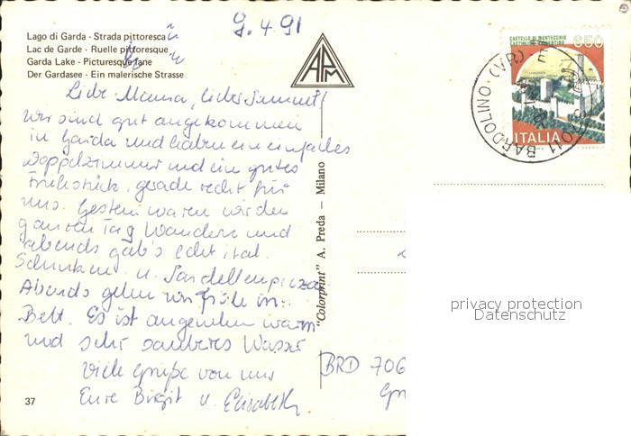 old postcard Lago di Garda Strada pittoresca malerische Strasse postalisch gelaufen Erhaltung siehe scans