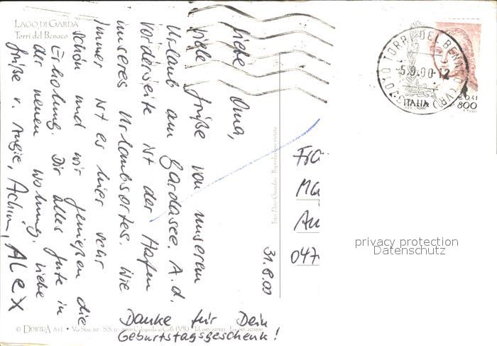 old postcard Lago di Garda torri del Benacco postalisch gelaufen Erhaltung siehe scans