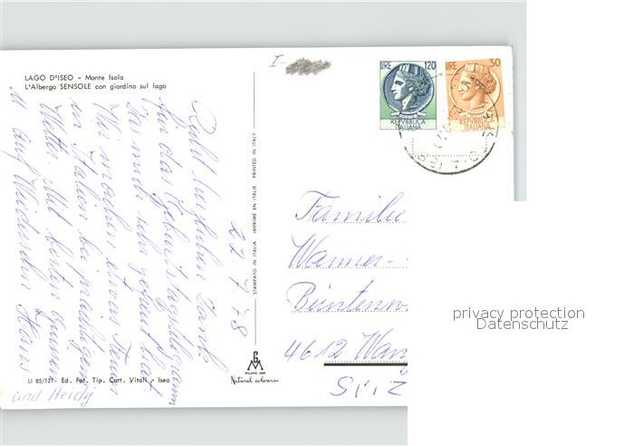 old postcard Lago di Iseo Albergo Sensole con giardino sul lago postalisch gelaufen Erhaltung siehe scans
