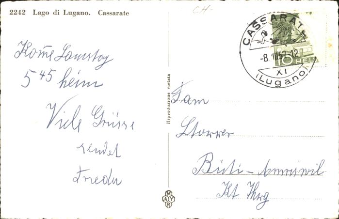 71384657 alte Postkarte Lago di Lugano TI Cassarate Panorama postalisch gelaufen gute Erhaltung KatCode: 11470210665262
