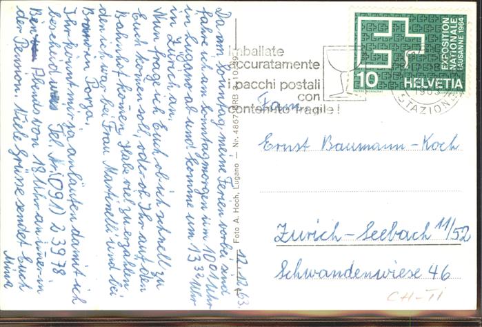 71294001 alte Postkarte Lago di Lugano TI Cassarate postalisch gelaufen gute Erhaltung KatCode: 11470210665262