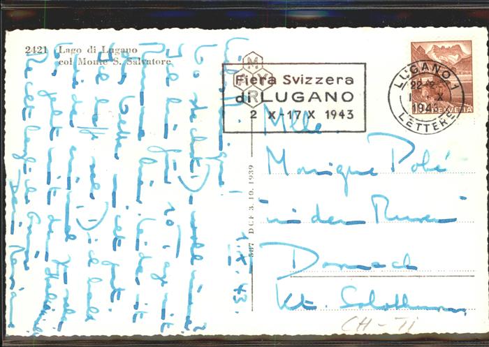 71308441 alte Postkarte Lago di Lugano TI col Monte S. Salvatore postalisch gelaufen gute Erhaltung KatCode: 11470210665262