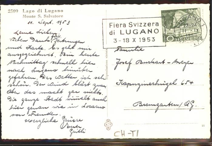 71293858 alte Postkarte Lago di Lugano TI Monte S. Salvatore Schwaene postalisch gelaufen KatCode: 11470210665262